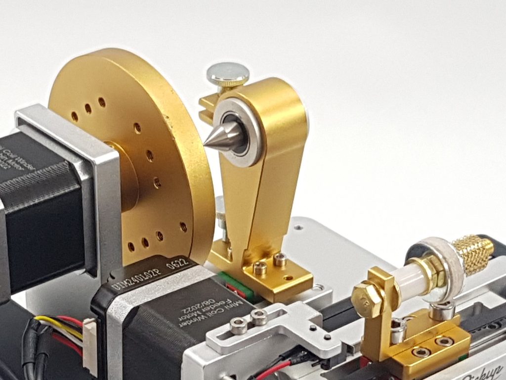 Fixed bracket with rotating tailstock for standalone applications or a replacement piece for our CNC Guitar Pickup Mini Coil Winder range.